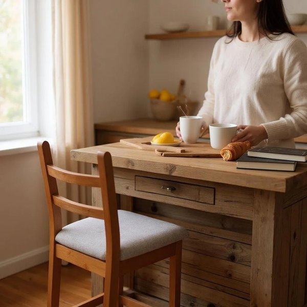 Charme Rústico com Conforto Premium: Combine o calor e a autenticidade da madeira rústica com o toque macio e elegante de um assento estofado. Perfeita para quem busca estilo sem abrir mão do conforto!