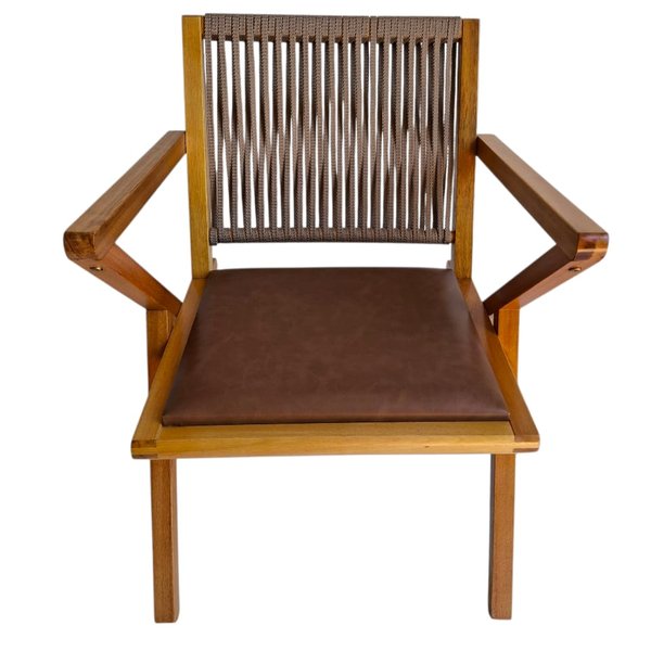 Aqui, cada veia, cada tonalidade da madeira maciça confere à cadeira uma personalidade única e um toque de aconchego incomparável.Com aplicação de elementos metálicos e corda ressalta a robustez do material e a maestria da marcenaria, transformando-a em uma peça unica.